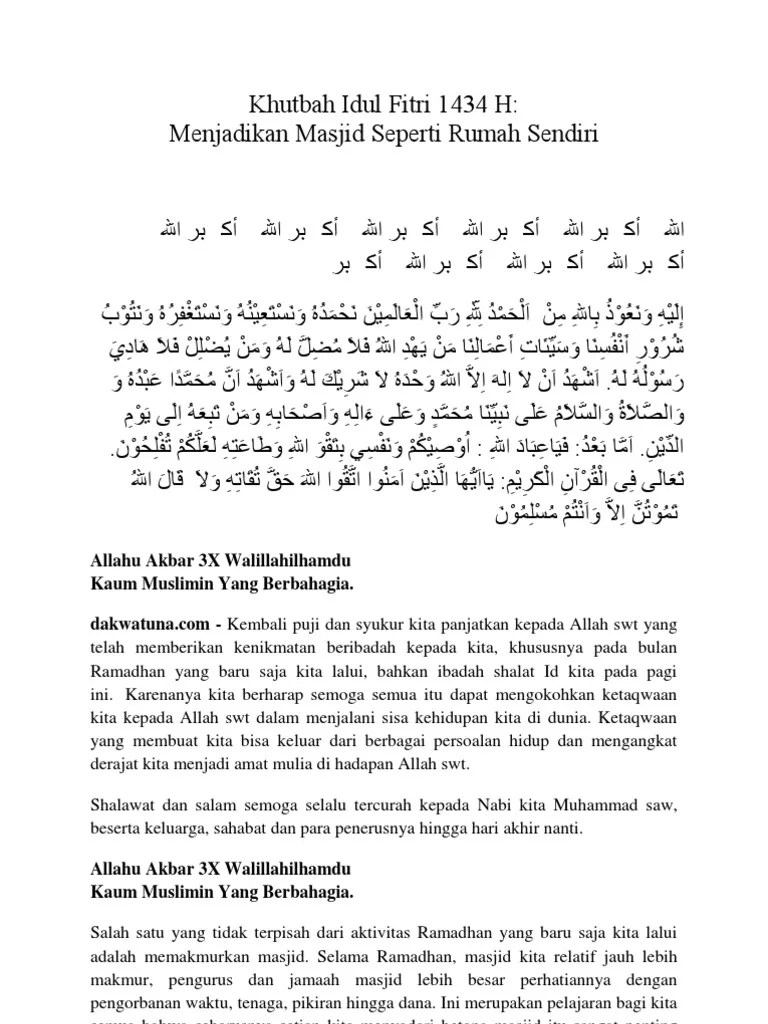 Naskah khutbah idul adha 1438 h 2017 keteladanan nabi ibrahim as. Sanusi, mh (wakil ketua pa.kota banjar jawa barat) ألســــــــــــــــلا م Jika pun jemaah tetap dilaksanakan, penerapan Berikut adalah contoh khutbah pendek, sekitar 7 menit, untuk salat idul fitri di rumah dengan tema wabah corona, puasa, dan ketaan kita kepada allah swt. Hari raya idul fithri tak lama akan menghampiri kita.